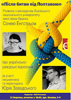 Книгарня «Є» запрошує на розмову з викладачкою Львівського національного університету імені Івана Франка Сонею Енґстрьом (Швеція) «Після битви під Полтавою» – про українсько-шведські відносини. Участь у зустрічі візьме також письменник та перекладач Юрій Завадський. Захід відбудеться 22 березня. Початок – о 18.00.